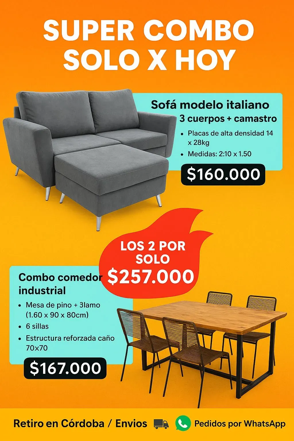 Súper combo sofá modelo italiano + combo comedor industrial
