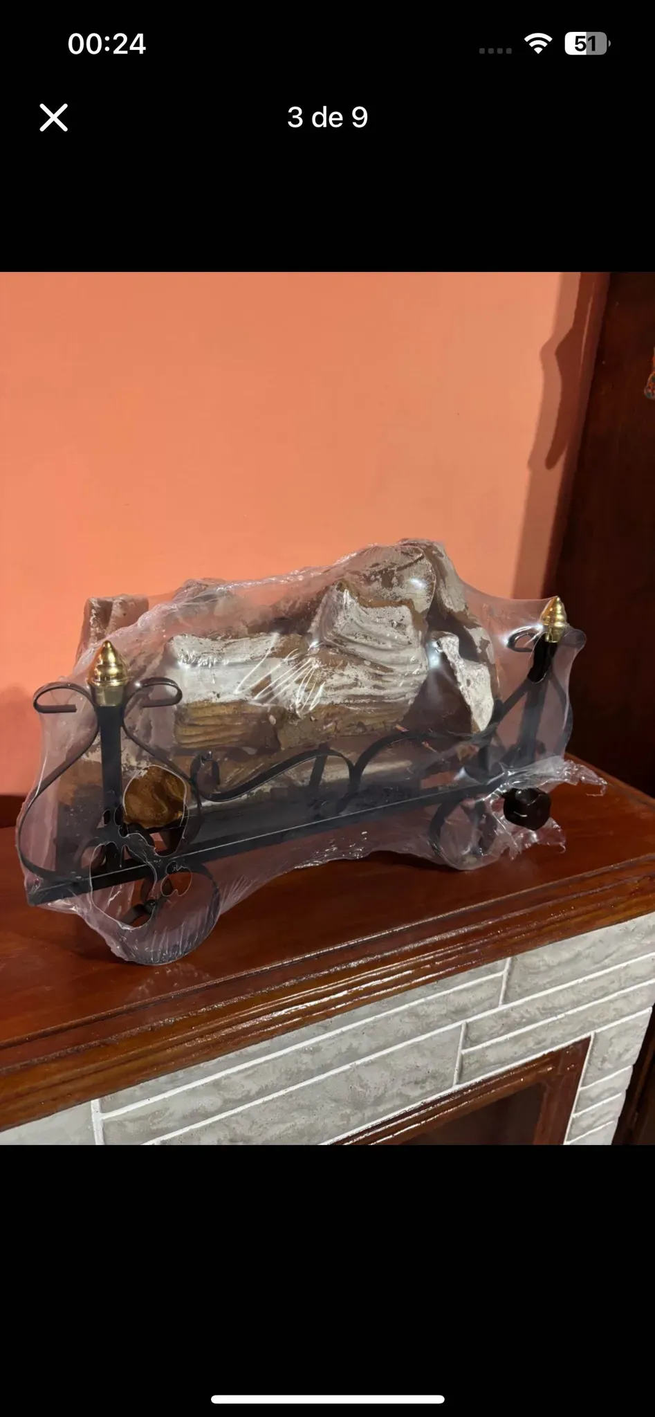 🪵 Hogar con leños cerámicos – Realismo y calidez