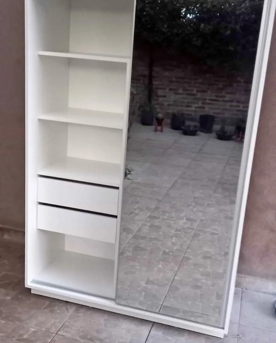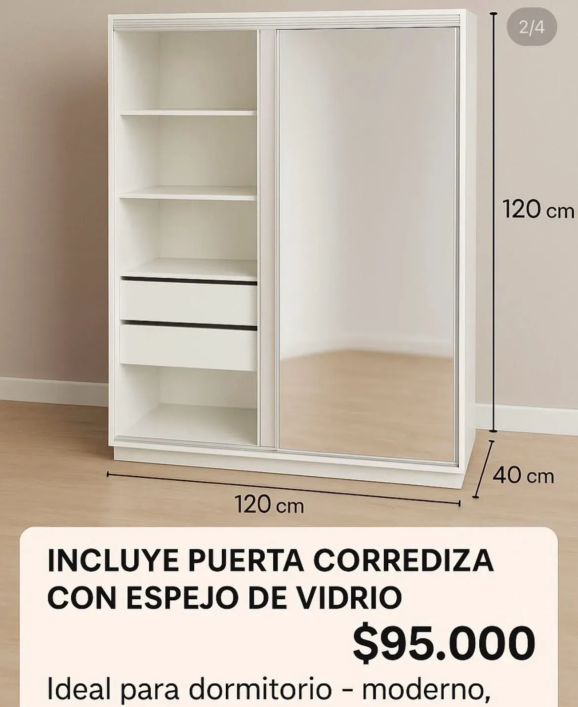 Incluye puerta corrediza con espejo de vidrio
